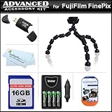 Advanced Accessory Kit For Fujifilm FinePix S1800 12.2 MP Digital Camera Includes Flexible Gripster Tripod + 16GB High Speed SD Spec