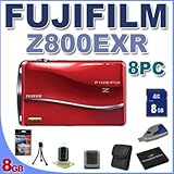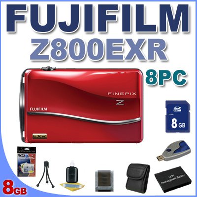 Fujifilm FinePix Z800EXR Digital Point and Shoot Camera (Red).Padded Camera Carrying Case + Flexible Mini Table Top Tripod.Extra Lithium Battery + 8GB SD Memory + Card Reader + Memory Card Wallet.Lens Cleaning Kit + Pack of LCD Screen Protectors. This Kit Includes: 1- Fujifilm Z800EXR 12 MP Digital Point and Shoot Camera (Red) - Brand New USA w/ Full Manufacturer's Accessories 1- 8GB SD Memory Card (Dont Miss a Memory!) 1- SD Memory Card Reader (Download Images Quicker!) 1- LI-40B Extended Long-Life Lithium Battery (Not Original FujiFilm) (Shoot Longer and Stronger!) 1- Padded Carrying Case 1- Memory Card Wallet (Stay Organized!) 1- Pack of LCD Screen Protectors (Protect from Dust & Scratches!) 1- Lens/LCD Cleaning Kit 1- Mini Table Top Tripod (Please keep in mind, that equipment shipped might no longer replicate picture) More about this camera: The Fujifilm FinePix Z800EXR Digital Point and Shoot Camera (Red) is a compact point and shoot camera with many big time features. It's got 12.0 megapixels of resolution for clear, gorgeous pictures, wise picture stabilization (say good-bye to shaky, blurry pics), tremendous smart flash that makes positive your flash footage are always well-balanced with the natural light, hybrid high pace auto focal level, EXR auto mode and face detection to optimize center of attention and exposure for faces of persons (and dogs, and cats) to your pictures. The big three.5" touch monitor with Dual Direction GUI no longer best makes it straightforward to border and evaluate your footage, it automatically notices how you might be clinging the digicam; hold it sideways and the view mechanically switches to landscape view; cling it vertically and the show changes to portrait view. You may additionally easily flick through libraries with a swipe of a finger on the display and organize photography with the Interactive File Management System.. Read more Fujifilm Z800EXR 12 MP Digital Point and Shoot Camera (Red) BigVALUEInc 8PC Saver Bundle!