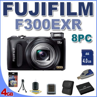 Extra Lithium Battery + 4GB SD Memory + Card Reader + Memory Card Wallet.Padded Camera Carrying Case + Flexible Mini Table Top Tripod.Lens Cleaning Kit + Pack of LCD Screen Protectors.Fujifilm FinePix F300EXR Digital Point and Shoot Camera (Black). (Please consider, that equipment shipped would possibly no longer mirror image)More about this camera: The Fujifilm FinePix F300EXR Digital Point and Shoot Camera (Black) is a point and shoot digital camera with many advanced options. It's received 12.0 megapixels of decision for clear, beautiful pictures, shrewd image stabilization (say goodbye to shaky, blurry pics), multi-frame composition, super clever flash that makes sure your flash photos are always well-balanced with the natural light, hybrid excessive speed auto center of attention, EXR auto mode and face detection to optimize focus and publicity for faces of people (and canines, and cats) in your footage. The big 3" LCD reveal makes it simple to border and assessment your footage.. Read more Fujifilm FinePix F300EXR Digital Point and Shoot Camera (Black) BigVALUEInc 8PC Saver Bundle!