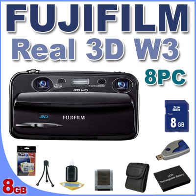 Lens Cleaning Kit + Pack of LCD Screen Protectors.Fujifilm FinePix Real threeD W3 Digital Camera.Extra Lithium Battery + 8GB SD Memory + Card Reader + Memory Card Wallet.Padded Camera Carrying Case + Flexible Mini Table Top Tripod.The FujiFilm Real threeD W3 has 10MP of excessive decision, a threex zoom lens (35mm equivalent--35-105mm), a three.5" LCD show with 1,150,000 dots for excellent picture quality, built-in flash, and striking 720p HD video. Not simplest can you view your 3D films the use of an HDMI cable (available separately) to connect the camera to any HDTV, that you would be able to watch them with full 3D impact, however with out threeD glasses, on the camera's large, brilliant and crisp 3.5" LCD display. (Please take now note, that accessories shipped may not reflect image) More about this digital camera: So you suppose making 3D films and films is simply too darned complicated for the likes of you? Think again, Bunky--this Fujifilm FinePix Real 3D W3 Digital Camera makes developing 3D movies and pictures a bit of yummy 3D cake.. Read more Fujifilm FinePix Real 3D W3 Digital Camera BigVALUEInc 8PC Saver Bundle!