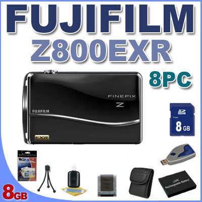 Padded Camera Carrying Case + Flexible Mini Table Top Tripod.Lens Cleaning Kit + Pack of LCD Screen Protectors.Extra Lithium Battery + 8GB SD Memory + Card Reader + Memory Card Wallet.Fujifilm FinePix Z800EXR Digital Point and Shoot Camera (Black)... Read more Fujifilm Z800EXR 12 MP Digital Point and Shoot Camera (Black) BigVALUEInc 8PC Saver Bundle!